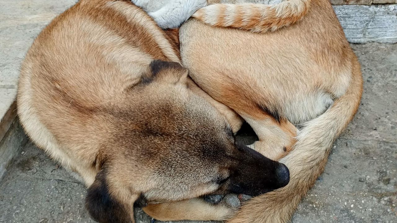 Nazilli Cumhuriyet Mahallesi’nde Hükümet Konağı giriş kapısı yakınında soğuk havada bir kedi ile köpeğin koyun koyuna yatması görenleri şaşırtıyor. Aynı kaptan mama yiyip, zaman zaman köpeğin sırtında uyuyan kedi dikkat çekiyor. İki hayvan arasındaki bağ, çevredekiler tarafından cep telefonu kamerasıyla görüntülendi.