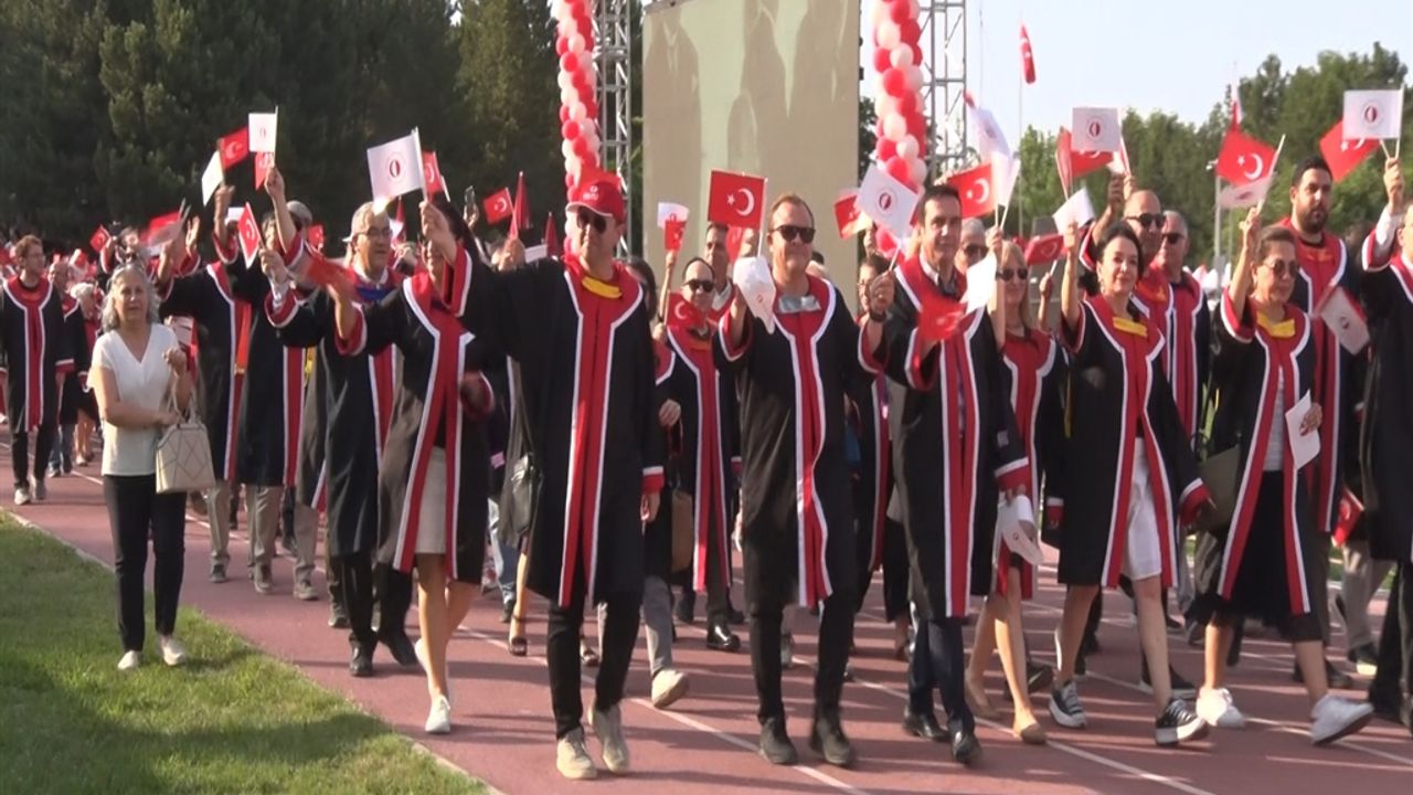 Törende konuşan ODTÜ Rektörü Prof. Dr. Ahmet Yozgatlıgil, "Dünyayı değiştirecek ODTÜ ailesi, hepinizi sevgiyle selamlıyorum. Bugün bu stadyumda geleceği şekillendirecek bir nesli mezun ediyoruz. Ülkemizi ve dünyayı ileriye taşıyacak kadro işte burada, bu sahada" dedi. ODTÜ mezunu olarak kendi öğrencilik yıllarına da değinen Yozgatlıgil, ODTÜ 1. Yurt’taki 401 numaralı odasından yıllarca Devrim Stadyumu’nu izlediğini, 29 yıl önce aynı sahada kendisinin de mezun olduğunu ve o törene katılan babasını 17 yıl önce bir 13 Temmuz günü kaybettiğini söyledi. Yozgatlıgil, "İnanıyorum ki bugün bizleri bir yerden izliyorlar. Allah tüm kaybettiklerimize rahmet etsin. Bu diplomayla karşılaşacağınız saygı ve güveni hissedeceksiniz. ODTÜ’lü olmanın farkını göreceksiniz. ODTÜ’lü olmak, fikir üretmekle kalmayıp o fikrin sorumluluğunu da taşımaktır. Eleştirmek kadar çözüm üretmek, belirsizlikle cesurca baş etmek demektir. Artık yönü belirsiz görünen bir dünyaya yön verecek olan sizlersiniz" ifadelerini kullandı.
