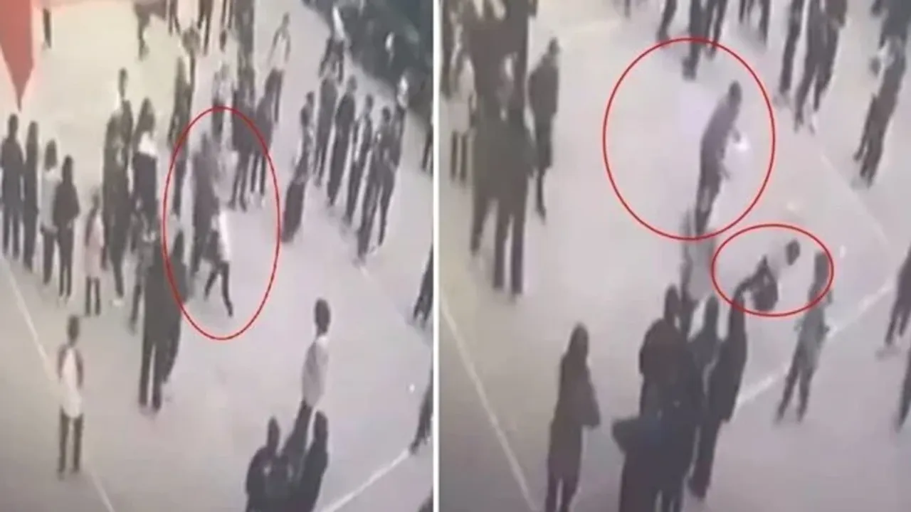 Darbelerin etkisiyle öğrencinin aksayarak arkadaşlarının yanına gittiği anlar da görüntülere yansıdı.
