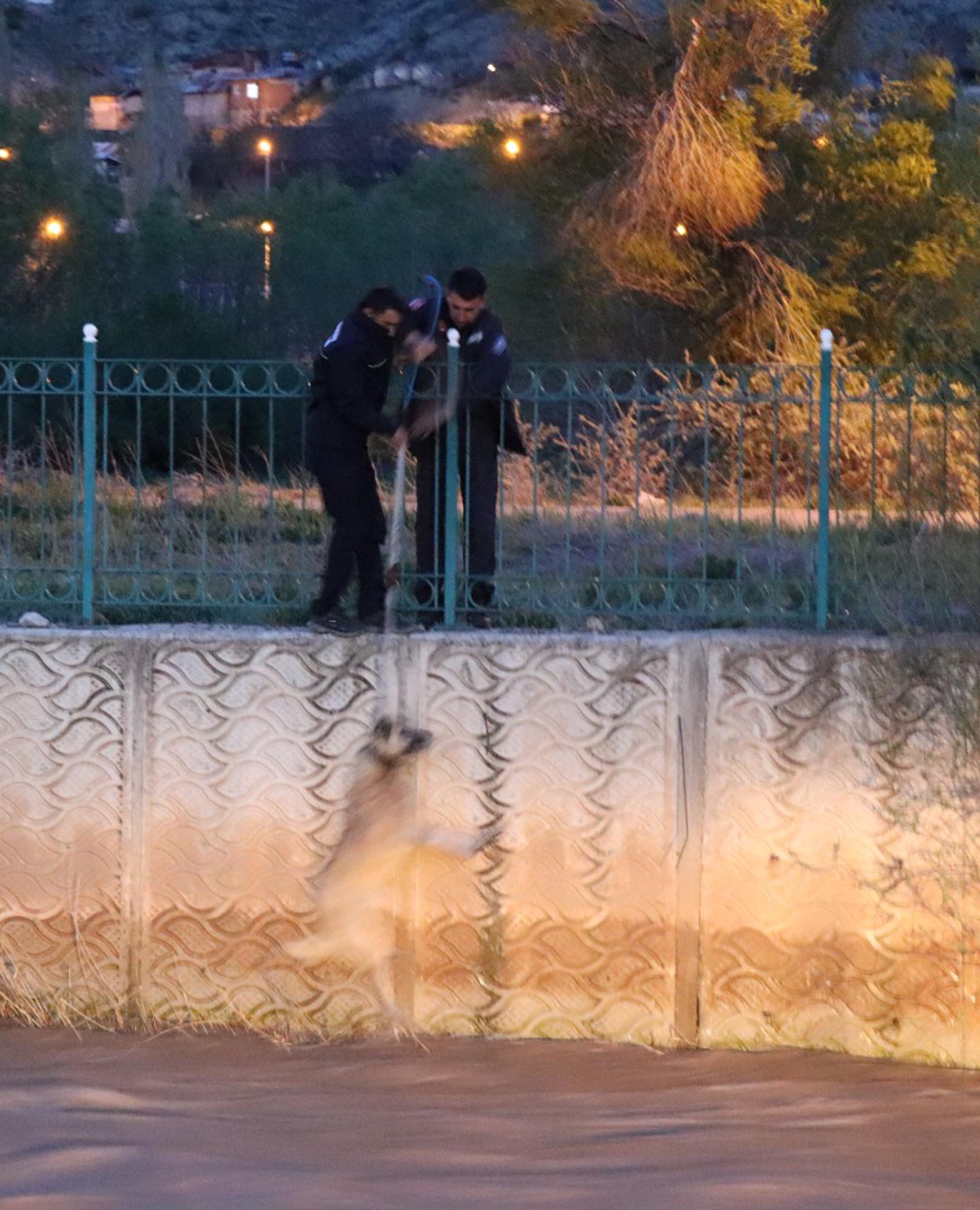 Olay, saat 16.00 sıralarında meydana geldi. Oltu Çayı’nda mahsur kalan sokak köpeğini gören vatandaşlar, Oltu Belediyesi’ne ihbarda bulundu. Bölgeye gelen Oltu ve Erzurum Büyükşehir Belediyesi itfaiye ekipleri, eriyen kar suları ve yağmurla debisi yükselen Oltu Çayı’nda mahsur kalan köpeği kurtarmak için çalışma başlattı. Su kenarında bekleyen köpeği halatla yakalayıp çıkarmak isteyen ekipler, ilk denemede başarılı olmadı. Suya düşerek yaklaşık 1,5 kilometre sürüklenen köpeği takip eden itfaiye görevlileri, Ziyabey Caddesindeki köprünün bulunduğu noktada tedbir aldı. Görevliler, köprünün yakınlarında su kenarındaki toprağa çıkan köpeğe ekmek vererek sakinleşmesini sağladı. Oltu Çayı kenarındaki bir iş yerinin bodrum katına inen ekipler, buradan köpeğe ulaşarak sudan çıkarmayı başardı. Yaklaşık 4 saat süren mücadelenin ardından sudan çıkarılan köpek, olay yerinden uzaklaştı.