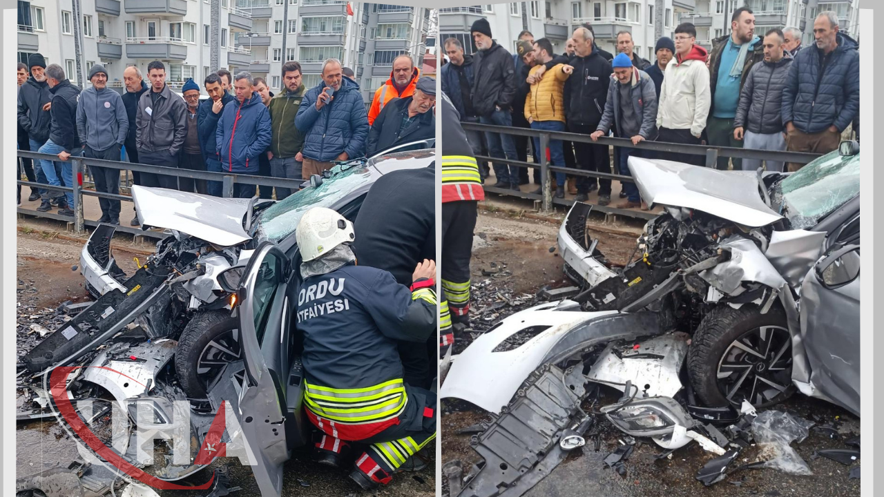 Kaza, saat 11.00 sıralarında Perşembe ilçesi Dereiçi Mahallesi’nde meydana geldi. Çağrı Halifeoğlu (39) yönetimindeki 52 AGF 090 plakalı otomobil ile şerit ihlali yaptığı belirtilen Mina Aydın (29) yönetimindeki 52 DG 470 plakalı otomobil kafa kafaya çarpıştı. Çevredekilerin ihbarı üzerine bölgeye sağlık, polis ve itfaiye ekipleri sevk edildi. Yaralanan araç sürücüleri Mina Aydın ve Çağrı Halifeoğlu ile yanlarındaki Çiğdem (38), Asel (1) ve Aras Halifeoğlu (7) itfaiye ekipleri tarafından sıkıştıkları yerden çıkarılarak, sağlık görevlilerinin ilk müdahalesinin ardından kentteki hastanelere kaldırıldı. Mina Aydın ile Çiğdem Halifeoğlu’nun durumunun ağır olduğu öğrenildi.