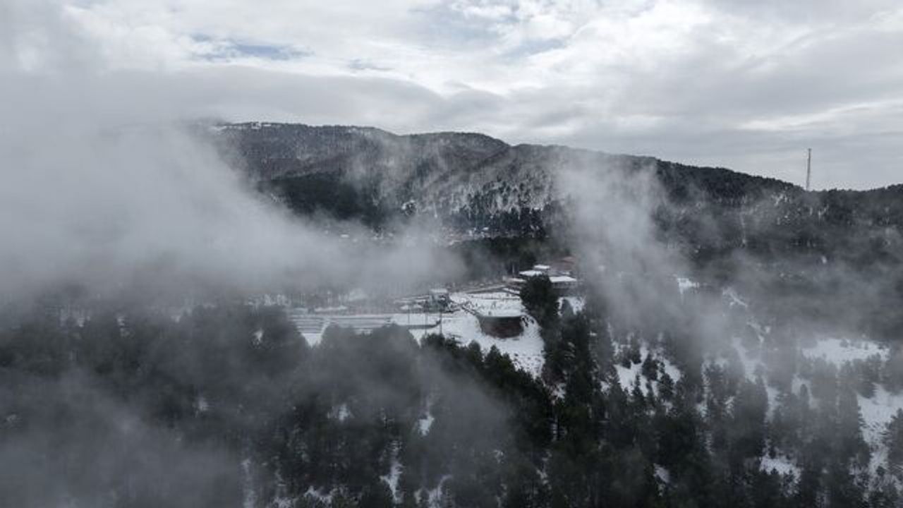 Yeniden etkisini artıran kar yağışıyla birlikte oluşan bu doğal güzellikler, dronla görüntülendi.