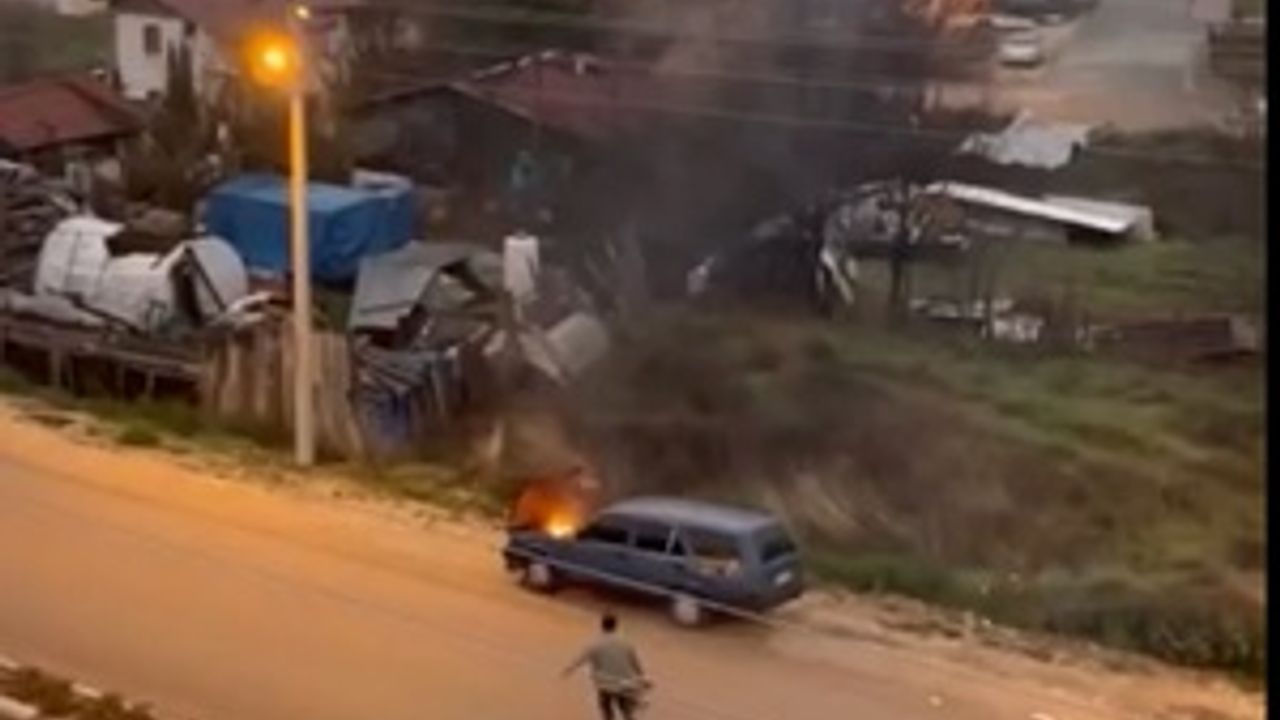 Alevlerin yükselmesiyle birlikte araç sürücüsü yakındaki binadan kovayla getirdiği suyla yangını söndürdü. Sürücünün aracını söndürmek için elinde su dolu kovayla koştuğu anları binada oturan bir vatandaş balkonundan cep telefonuyla görüntüledi.