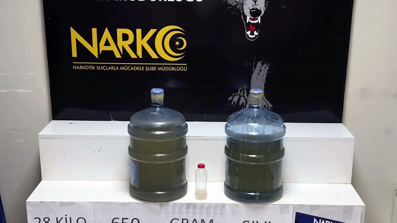 İl Emniyet Müdürlüğü Narkotik Suçlarla Mücadele Şubesi ekipleri, kente yüklü miktarda uyuşturucu madde getirileceği bilgisi sonrası harekete geçti. Ekipler, Tarsus-Adana-Gaziantep (TAG) Otoyolu'nda takibe aldıkları otomobili bir süre sonra önünü keserek durdurdu. Yabancı uyruklu sürücü K.C. (52) ile yanındaki H.Z.'nin (48) indirildiği otomobilde, narkotik köpeği ile arama yapıldı. Bagajdaki 2 damacananın içinde 28 kilo 650 gram sıvı metamfetamin ele geçirildi. Gözaltına alınan K.C. ile H.Z., sorgularında, "Adana'ya gezmek için gidiyorduk. Bagajdaki uyuşturucudan haberimiz yok" dedi.