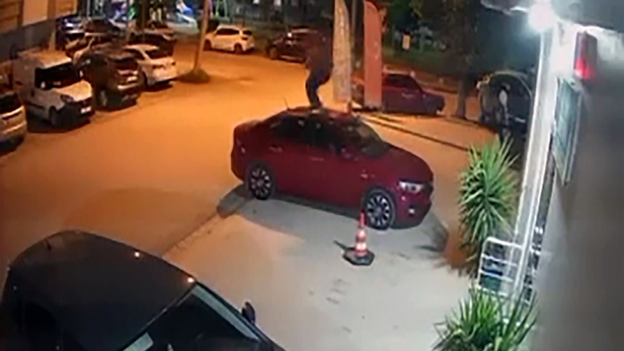 Olay, dün saat 22.00 sıralarında Seyhan ilçesi Ziyapaşa Mahallesi'nde meydana geldi. Alkollü olduğu öne sürülen kişi, pantolonundaki kemeri çıkarıp, park halindeki araçlara tekme ve yumruk vurarak zarar verdi. Otomobillerden birinin üzerine çıkan şüpheli, tavanında zıpladıktan sonra kayıp, bagaj kapağının üzerine düştü. Elindeki kemerle otomobile vuran şüphelinin başka araçlara da zarar verdiği belirtildi. O anlar, bir apartmanın güvenlik kamerasına yansıdı.