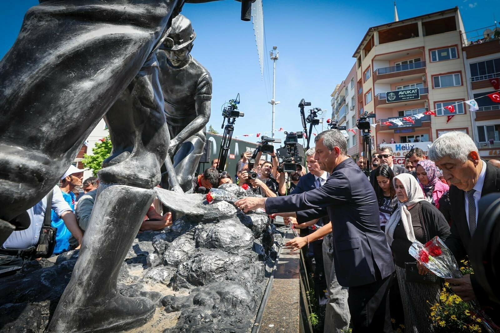 CHP Genel Başkanı Özgür Özel, 301 kişinin yaşamını yitirdiği Soma maden faciasının 11'inci yıl dönümünde Soma'da bir dizi ziyarette bulundu. İlk olarak partisinin Soma ilçe başkanlığını ziyaret eden Özel'i ilçe binası girişinde CHP milletvekilleri Ahmet Vehbi Bakırlıoğlu, Bekir Başevirgen, Selma Aliye Kavaf, CHP Manisa İl Başkanı İlksen Özalper, CHP'li Soma Belediye Başkanı Sercan Okur, CHP Soma İlçe Başkanı Levent Elbinsoy ile partililer karşıladı. Daha sonra maden şehitlerinin ailelerine ziyarette bulunan Özel, Park Altı Ulu Camisi'nde madenci şehitleri için düzenlenen mevlide katıldı. Özel daha sonra Soma Belediyesi'ni ziyaret etti. Ziyarette konuşan Özel, "301 madencimizin hayatını kaybettiği Soma'da, sabah bu işin geçmişini ve bugüne nasıl geldiğini konuştuğumuz bir televizyon programına gittik. Şehitlerimiz için okutulan mevlidi dinledik. Mesleki Eğitim Merkezi (MESEM) projesi kapsamında hafta sonu çalıştırıldığı inşaattan düşüp ölen kardeşimizin ailesini ziyarete gittik. Birazdan Kartalkaya yangınında kızı ve torununu kaybeden bir aile ile bir araya geleceğiz. Ordudan atılan deniz teğmenimizin ailesini ziyarete gittik" dedi.