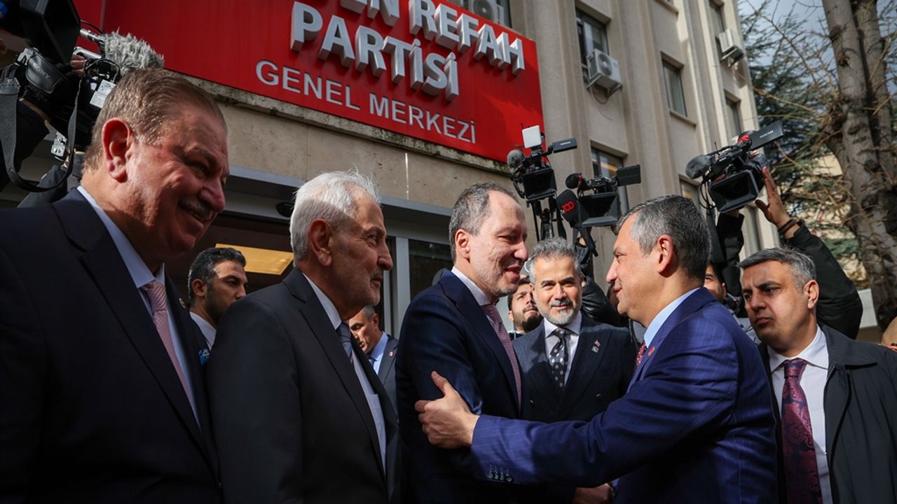 CHP Genel Başkanı Özel, Yeniden Refah Partisi'nin 3'üncü Olağan Büyük Kongresi'nde yeniden Genel Başkanlığa seçilen Fatih Erbakan'ı, beraberindeki heyetle ziyaret etti. Basına kapalı görüşmenin ardından ortak basın toplantısı düzenlendi. Özel, "16 Kasım'da Yeniden Refah Partisi kurultayını yapmıştı. Sayın Erbakan, bir kez daha genel başkanlık görevine seçildi. Ben kendisini o günlerde aramıştım ve bir ziyarette bulunmak istediğimi söylemiştim. Ancak hayırlı olsun ziyaretimiz bugüne nasip oldu. Ben bir kez daha kendisini, yeniden göreve gelenleri, yeni seçilenleri kutluyorum. Başarılı çalışmalarının devam etmesini ümit ediyorum" dedi.