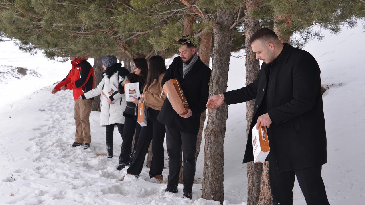 Gül Tortum ise, “Zorlu hava şartlarında kuşlara yem bırakmak istedik. Ormanlık alana çıkarken kar engelini arkadaşlarla dayanışma halinde aştık. Yem bulmakta zorlanan kuşlar için yem bıraktık” ifadelerini kullandı.