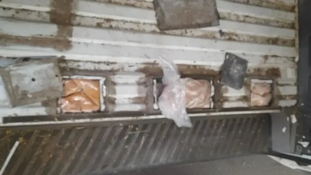 Kamyonetin X-ray cihazıyla taranması sonucu aracın ön tarafındaki zeminde alışılmadık yoğunluklar tespit edildi. Gümrük memurları daha sonra yaptıkları fiziki incelemede, altında özel olarak yapılmış gizli bölmelerin bulunduğu beş adet metal kapak tespit etti. Saklandıkları yerlerden 47 paket çıkarıldı, bunlardan 26'sının içinde kahverengi macun kıvamında bir madde, diğer 21 paketin içinde ise beyaz toz halinde bir madde bulundu.