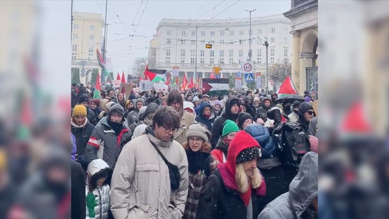 Yürüyüşe katılan yüzlerce kişi, "Özgür Filistin", "Nehirden denize Filistin özgür olacak" ve "Varşova ve Gazze aynı davayı paylaşıyor" sloganları attı.