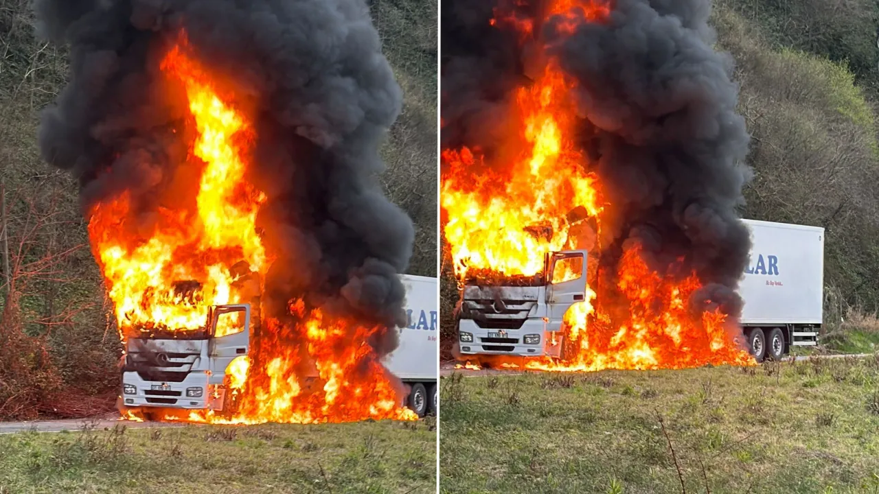Pazar ilçesinden geçen Karadeniz Sahil Yolu'nda seyir halinde olan TIR’ın motor bölümde yangın çıktı. Sürücüsünün yol kenarında çekip araçtan indiği TIR kısa sürede alevlere teslim oldu. Alev topuna dönen TIR’ı görenler durumu itfaiye ekiplerine bildirdi. Bölgeye gelen itfaiye ekiplerinin müdahalesiyle yangın söndürülürken, TIR kullanılamaz hale geldi.