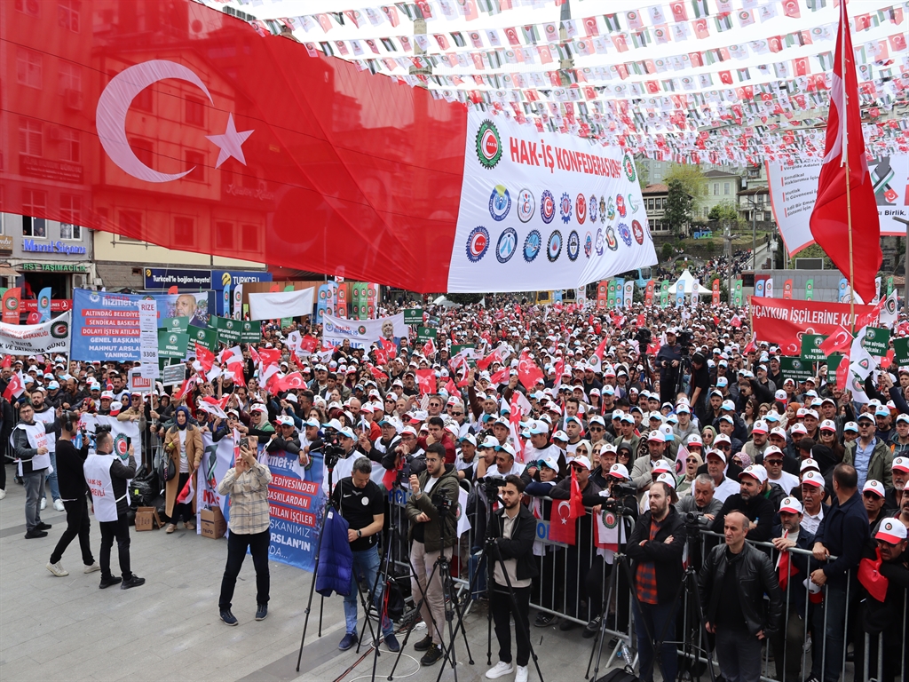 Rize'de 1 Mayıs Emek ve Dayanışma Günü dolayısıyla HAK-İŞ tarafından 15 Temmuz Demokrasi ve Cumhuriyet Meydanı'nda program düzenlendi. Kutlamalar kapsamında sendikalar, sivil toplum kuruluşları, meslek odaları, siyasi partiler ve vatandaşlar bir araya geldi. Ellerinde dövizlerle "HAK-İŞ nerede, biz oradayız", "ÇAYKUR bizim, bizim kalacak" sloganlar atan kalabalık, sendika temsilcilerini dinledi.