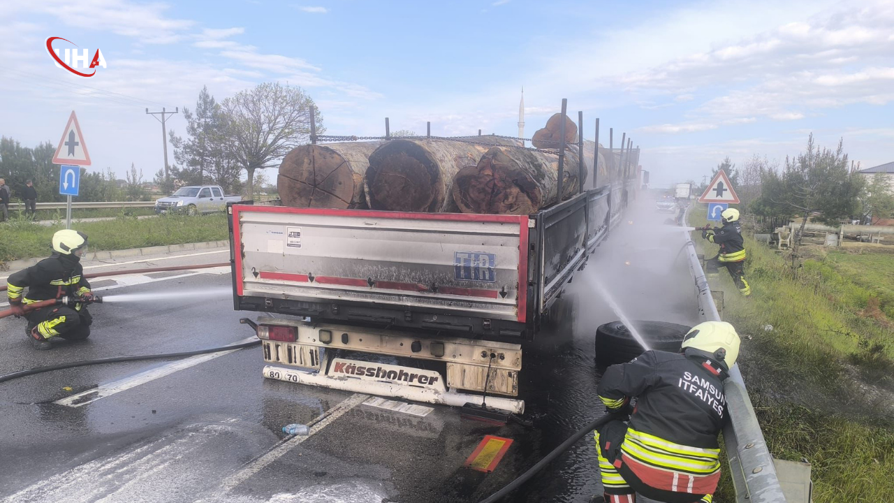 Olay, Samsun'un Bafra ilçesi Bedeş mevkisinde meydana geldi. Anıl Mehmet C. (31) yönetimindeki 57 EF 866 plakalı tomruk yüklü kamyonun dorse lastiği bir anda alev aldı. Yangını fark eden sürücü, aracı emniyet şeridine çekerek durumu 112 Acil Çağrı Merkezine bildirdi. İhbar üzerine bölgeye gelen Büyükşehir Belediyesi itfaiye ekipleri, kısa sürede büyüyerek dorsenin diğer kısımlarına sıçrayan alevlere müdahale etti. Ekiplerin çalışması sonucu yangın, tomrukların tamamına ve çekici kısmına sıçramadan kontrol altına alınarak söndürüldü.