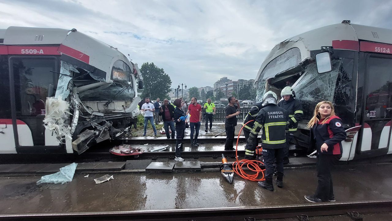 Samsun Hafif Raylı Sistem'e (SAMULAŞ) ait karşılıklı sefer yapan iki tramvay, Piazza durağı yakınlarında çarpıştı.