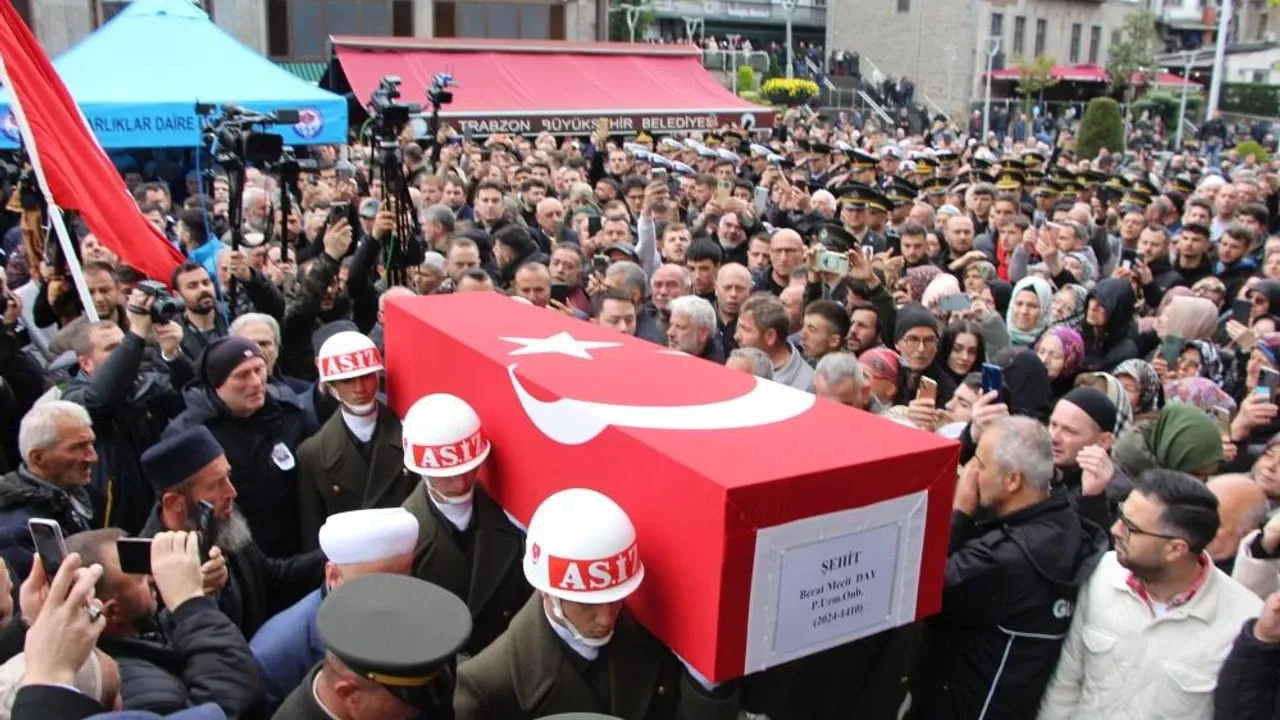 Irak'ın kuzeyinde Pençe-Kilit operasyonu bölgesinde teröristler tarafından düzenlenen dronlu saldırıda yaralanan ve tedavi gördüğü hastanede şehit olan Piyade Uzman Onbaşı Berat Mecit Day bugün memleketi Trabzon'da son yolculuğuna uğurlandı.
