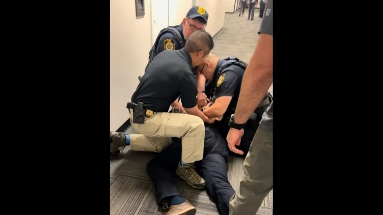 California Senatörü Padilla, ICE operasyonlarıyla ilgili açıklama yapan Bakan Noem'e soru yöneltmek üzere ayağa kalktığında, güvenlik görevlileri hızla müdahale etti. Çevredeki kameralar Padilla'nın, "Ben Senatör Alex Padilla, bakana sorularım var" sözlerinin ardından yere yatırıldığını ve kelepçelendiğini kaydetti. Müdahale sırasında Padilla'nın, "Çekin ellerinizi" diyerek direndiği de duyuldu.