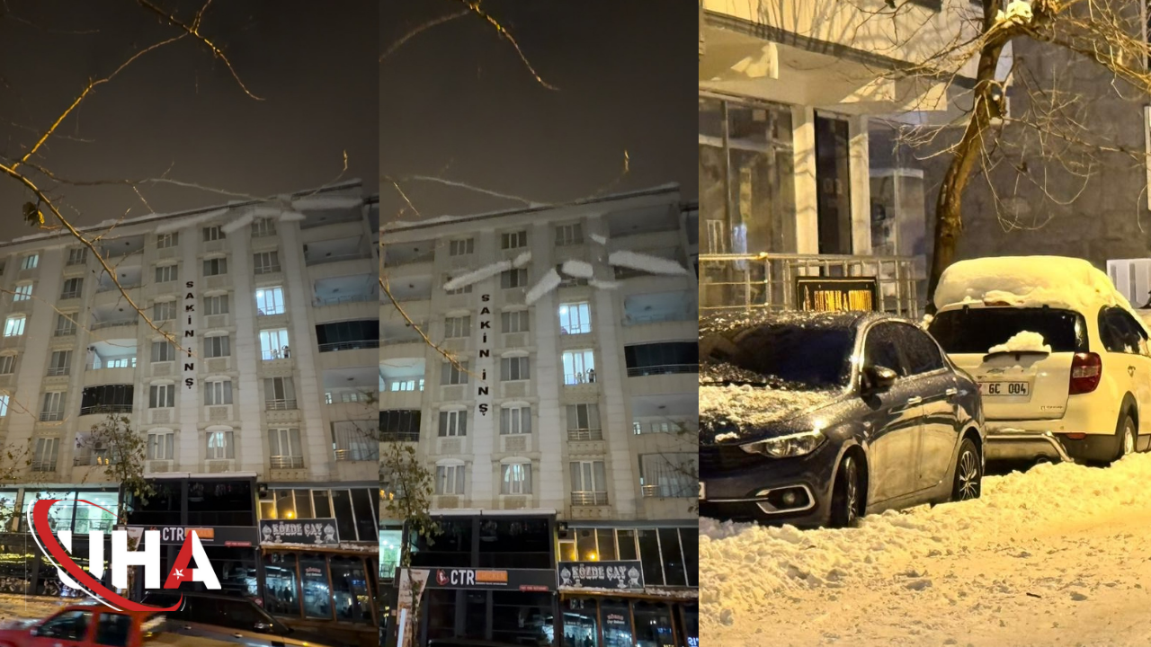 Kooperatif Mahallesi 1757’nci Sokak’ta dün akşam saatlerinde 7 katlı apartmanın çatısında biriken kar kütlesi koparak park halindeki aracın üzerine düştü. Araçta hasar oluşurken, olayda yaralanan ise olmadı. Bahçelievler Mahallesi Turan Beyazıt Caddesi’nde ise 7 katlı binanın çatısında biriken kar kütleleri, zemin kattaki 2 işletmenin sundurmasına düştü. İhbar üzerine her 2 bölgeye de polis ve itfaiye ekipleri sevk edildi. İtfaiyeciler, yeni risk oluşmaması için çatılardaki kar kütlelerini tazyikli suyla temizledi. Kar kütlelerinin işletmenin çatısına düşme anı da cep telefonu kamerasıyla kaydedildi.