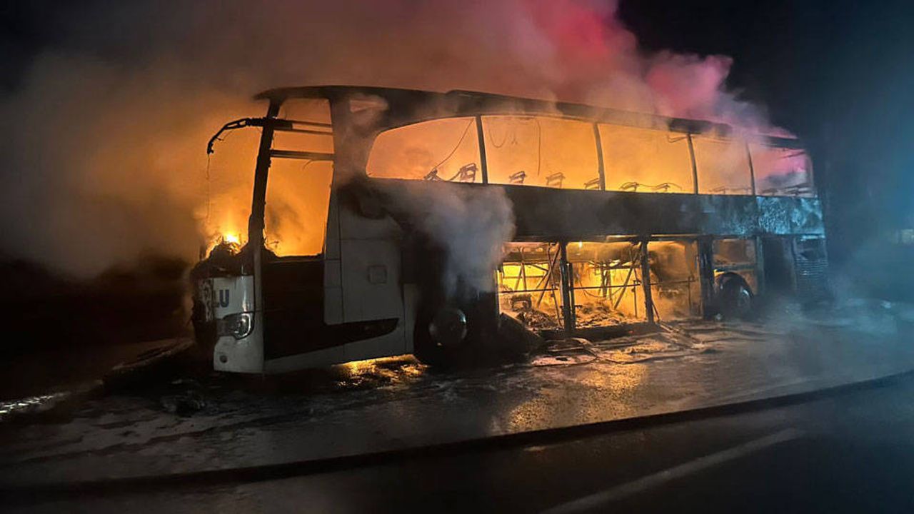 Ekiplerin müdahalesiyle söndürülen yangında, yolcu otobüsü kullanılamaz hale geldi.