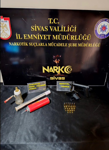 Sivas Emniyet Müdürlüğü ekipleri, uyuşturucu madde ticareti yapan, kullanan ve madde kullanımını sosyal medya aracılığı ile özendiren kişilerin yakalanmasına yönelik eş zamanlı operasyon düzenledi. Narkotik Suçlarla Mücadele, KOM, TEM, Siber Suçlarla Mücadele ve İstihbarat Şube ekiplerince Sivas'ta 14, Gaziantep'te ise 1 şüpheli gözaltına alındı. Yapılan aramalarda 25,81 gram metamfetamin, 212 sentetik ecza, 0,81 gram sentetik kannobinoid, 2,28 gram esrar, 193 kullanımlık kağıda emdirilmiş vaziyette sentetik kannobinoid, 2 kurusıkı tabanca, 21 tabanca fişeği ve 2 uyuşturucu madde kullanma aparatı ele geçirildi. Emniyetteki işlemlerinin ardından adliyeye sevk edilen şüphelilerden 8'i tutuklandı, diğerleri ise serbest bırakıldı.