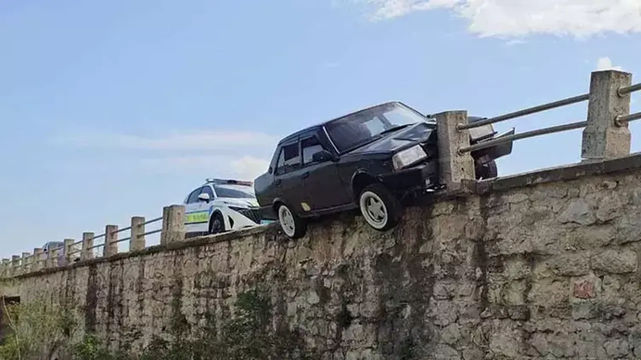 Tarihi Köprünün Bariyerine Çarpan Otomobil Asılı Kaldı