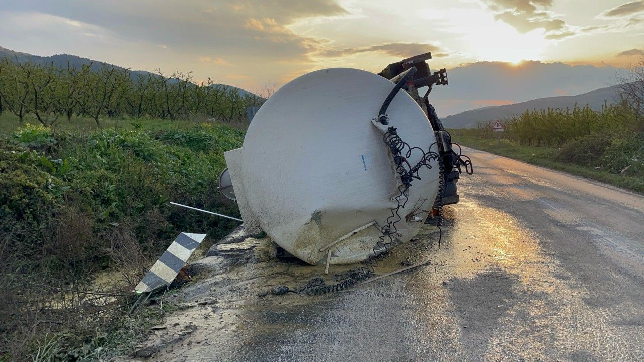 Kaza akşam saatlerinde İznik-Adapazarı yolu Karatekin mevkisinde meydana geldi. R.C. (45) idaresindeki 42 DKJ 92 plakalı tavuk yağı yüklü TIR, sürücüsünün direksiyon hakimiyetini kaybetmesiyle kontrolden çıktı. Dorsesinden ayrılan TIR yol kenarına savruldu. Dorsedeki tankta bulunan tavuk yağının bir bölümünün döküldüğü kazada sürücü hafif şekilde yaralandı. İhbar üzerine gelen sağlık ekibinin müdahalesiyle sürücü hastaneye kaldırılarak tedaviye alındı.