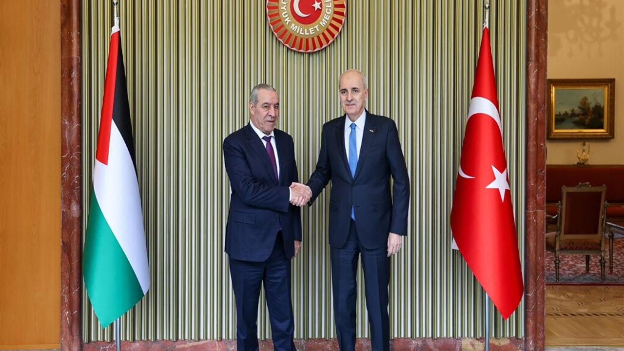 TBMM Başkanlığından yapılan açıklamaya göre; Meclis Başkanı Numan Kurtulmuş, Filistin Devlet Başkan Yardımcısı Hüseyin Şeyh ve Filistin Ulusal Konseyi Başkanı Rawhi Fattouh ile Meclis’te bir araya geldi. Görüşmede AK Parti Konya Milletvekili Latif Selvi, AK Parti İstanbul Milletvekili Halis Dalkılıç ve MHP Ankara Milletvekili Yaşar Yıldırım da yer aldı. Kurtulmuş, Şeyh ve Fattouh görüşmede; İsrail'in 7 Ekim 2023'ten bu yana Gazze'de hak, hukuk, değer tanımaksızın sürdürdüğü soykırım, Batı Şeria’da İsrail güçleri ve yasa dışı yerleşimcilerin şiddet ve zorbalıkları ele alındı. Kurtulmuş, Filistin davasının Türkiye için milli bir mesele olduğunu ve hem devlet hem de millet olarak her alanda Filistin davasına destek vermeyi büyük bir vecibe olarak gördüklerini belirtti. Cumhurbaşkanı Recep Tayyip Erdoğan başta olmak üzere devletin bütün kurum ve kuruluşlarının Filistin'e destek olmak için seferber olduğunu kaydeden Kurtulmuş, "Milletin temsilcileri olarak bizler de TBMM'de Filistin meselesini her zaman en üstteki dış politika meselemiz olarak gördük. Parlamenter diplomasinin bütün imkanlarını kullanarak uluslararası platformlarda Filistin devletinin ve halkının hakkını korumak için gayret sarf ettik, sarf ediyoruz" ifadesini kullandı.