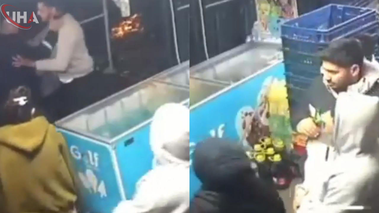 Kavga anı ise iş yerinin güvenlik kamerasına yansıdı.