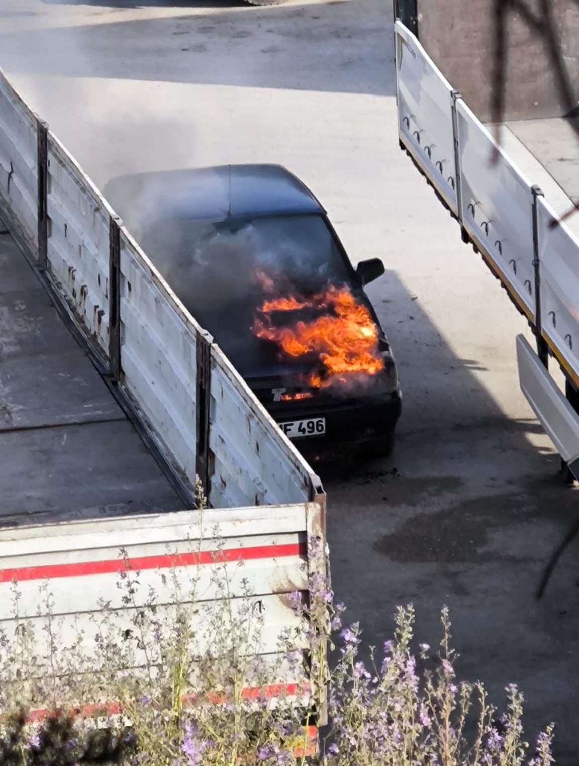 Yangın saat 17.00 sıralarında çıktı. TIR garajında park halinde bulunan Recep A.’ya ait 26 NF 496 plakalı otomobilin motor bölümünden alevlerin yükseldiğini görenler, 112 Acil Çağrı Merkezine haber verdi. İhbar üzerine olay yerine itfaiye ve polis ekipleri sevk edildi. Polis ekipleri çevrede güvenlik önlemi alırken, kısa süreli paniğe neden olan yangın, itfaiye ekiplerinin müdahalesiyle yarım saatte söndürüldü. Araç kullanılamaz hale gelirken, yangının çıkış nedeniyle ilgili inceleme başlatıldı.