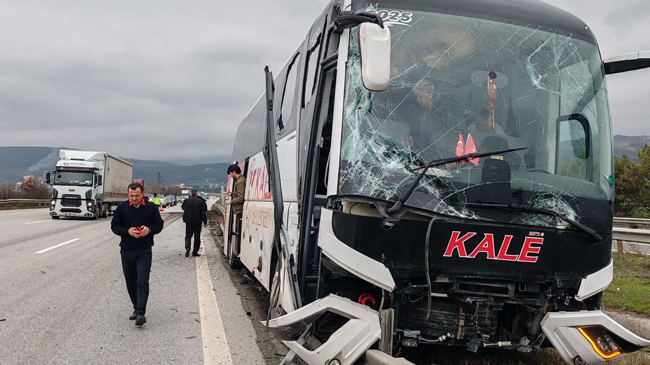 Kaza, dün saat 15.00 sıralarında, Anadolu Otoyolu’nun Çaydurt mevkisinde meydana geldi. Kastamonu’dan İstanbul’a giden Aşkın Lütfi Yeni’nin kullandığı 34 KS 591 plakalı yolcu otobüsüne sağ şeritten gelen 41 AKH 217 plakalı TIR çarptı. Yolcu otobüsü çarpmanın etkisiyle bariyerleri parçalayıp refüje çıktı. İhbar üzerine olay yerine jandarma ekipleri sevk edildi. Kaza sırasında yara almayan otobüsteki 26 yolcu başka bir otobüse nakledildi.