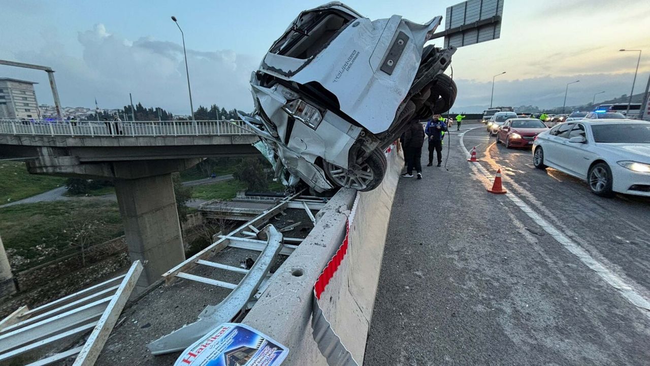 Kaza, gündüz saatlerinde Konak ilçesinde meydana geldi. Sürücüsü ve plakalı öğrenilemeyen iş makinesi yüklü TIR, iddiaya göre freni boşalması sonucu önündeki kamyonete çarpıp, kontrolden çıkarak viyadükten aşağı düştü. TIR'ın çarptığı kamyonet ise viyadükte asılı kaldı. Çevredekilerin ihbarı üzerine kaza yerine sağlık ve jandarma ekipleri sevk edildi. Kazada yaralanan 3 kişi, ambulanslarla hastaneye kaldırıldı. Tedaviye alınan yaralılardan birinin durumunun ağır olduğu öğrenildi.