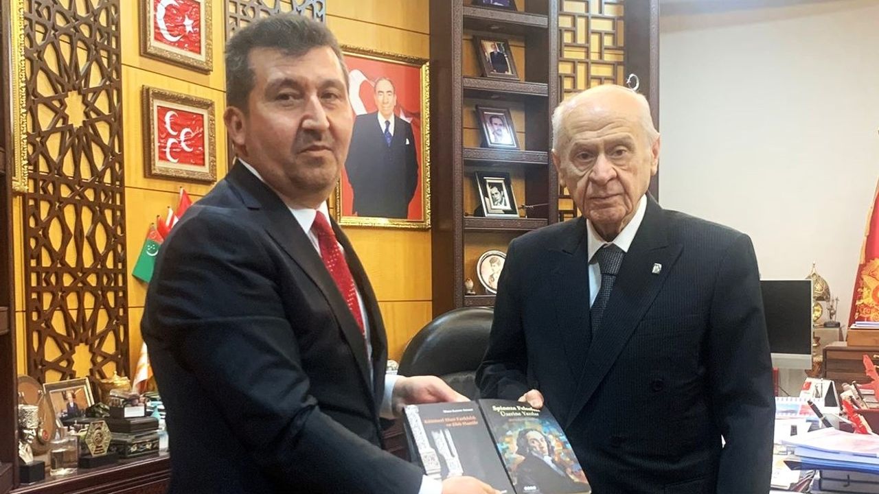 Devlet Bahçeli de Arıcan'a çalışmalarında başarılar diledi. Görüşmenin sonunda Arıcan, Bahçeli'ye kitaplarını hediye etti.