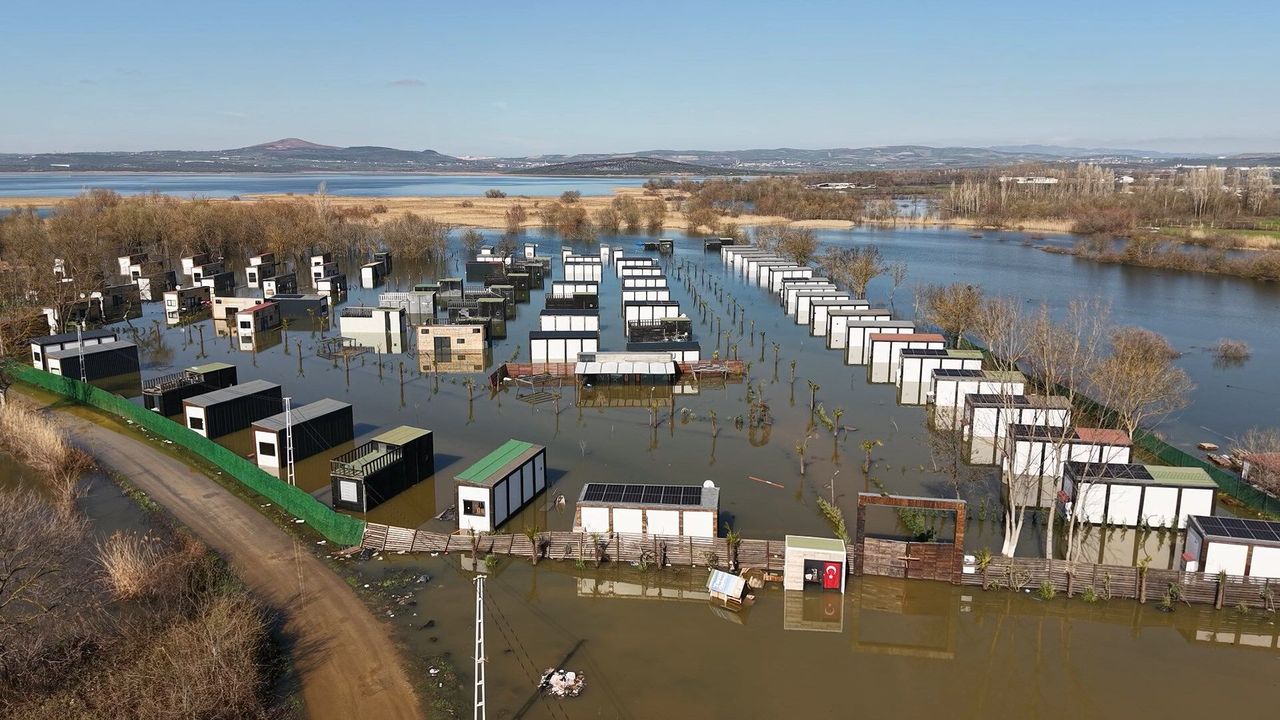 Nilüfer ilçesinde etkili olan sağanakların ardından Uluabat Gölü’nün su seviyesi 10 metre yükselip taştı. Göl suları yerleşim alanlarına ulaşırken, Akçalar Mahallesi’nde çok sayıda tiny house ve hobi evi de su altında kaldı. Yolların ulaşıma kapandığı bölgedeki evlerde de hasar meydana geldi. Su altında kalan bölge dronla görüntülendi.