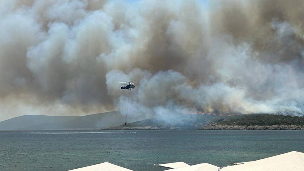 İhbarın ardından olay yerine gelen itfaiye ve helikopterin havadan ve karadan müdahalesi sürüyor.
