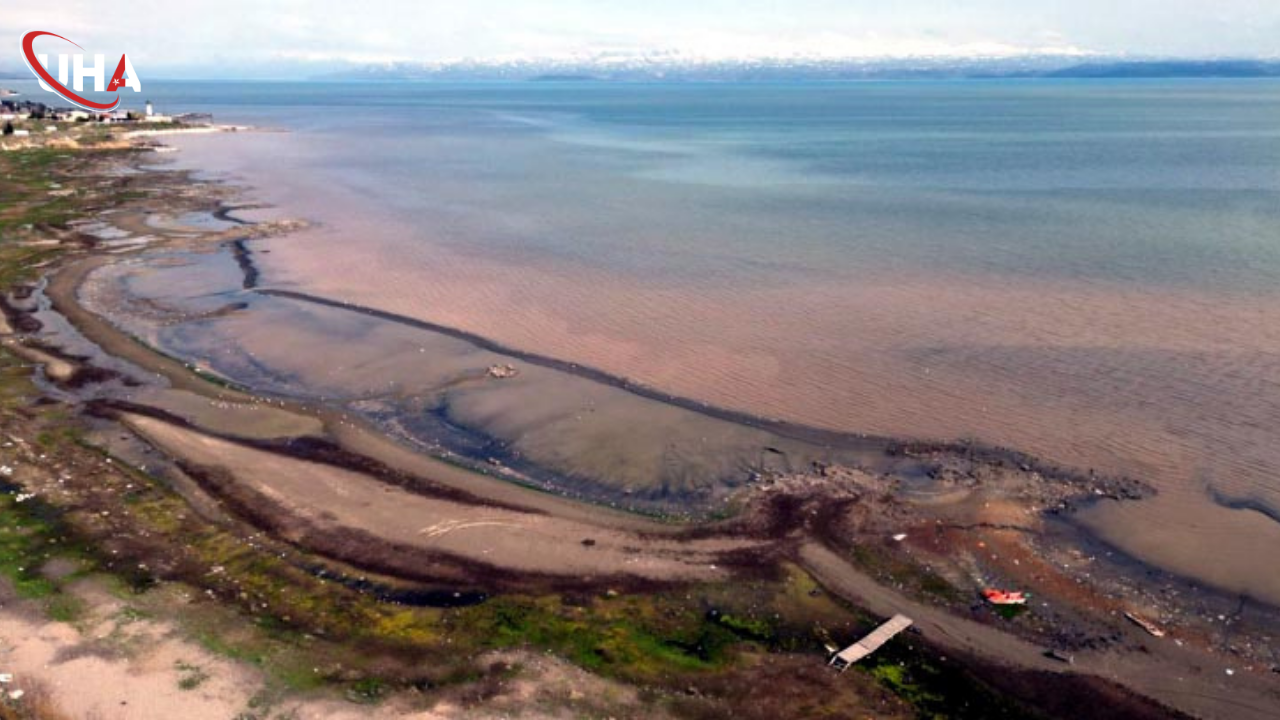 Yağışlarla birlikte derelerin taşıdığı tonlarca çamur, gölün Erciş kıyılarını tamamen kapladı. Göle dökülen suların yarattığı bu görsel değişim, dron kameralarıyla havadan görüntülendi. Sahil şeridinde suyun rengi tamamen kahverengiye dönerken, gölün açık kısımlarının masmavi kalması ortaya sıra dışı bir manzara çıkardı.