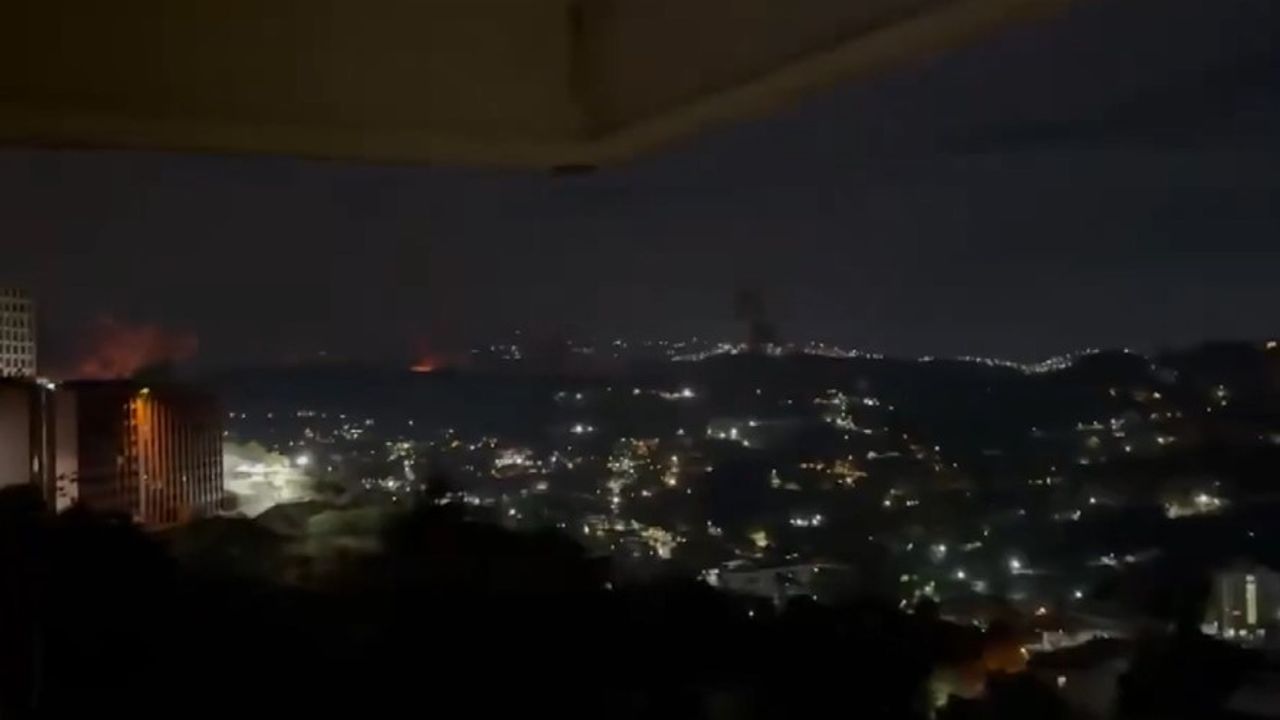 Görüntülerde şehrin çeşitli noktalarından duyulan patlama sesleri ile birlikte yoğun duman yükseldiği görülüyor.