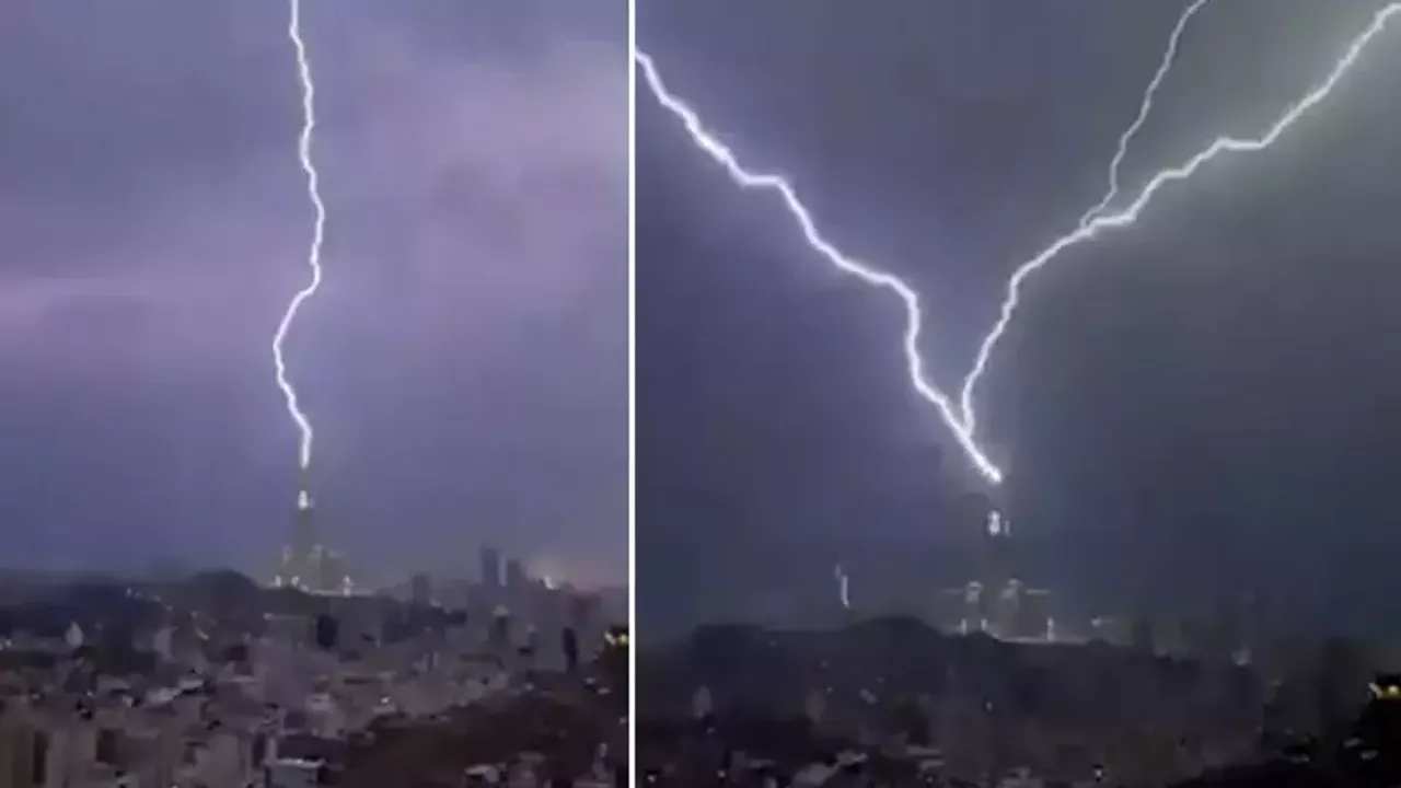 Suudi Arabistan Mekke'yi şiddetli yağış ve fırtına vurdu. Dünyanın en yüksek 3. yapısı olan Kraliyet Saat Kulesi'ne art arda düşen yıldırımlar geceyi aydınlattı.