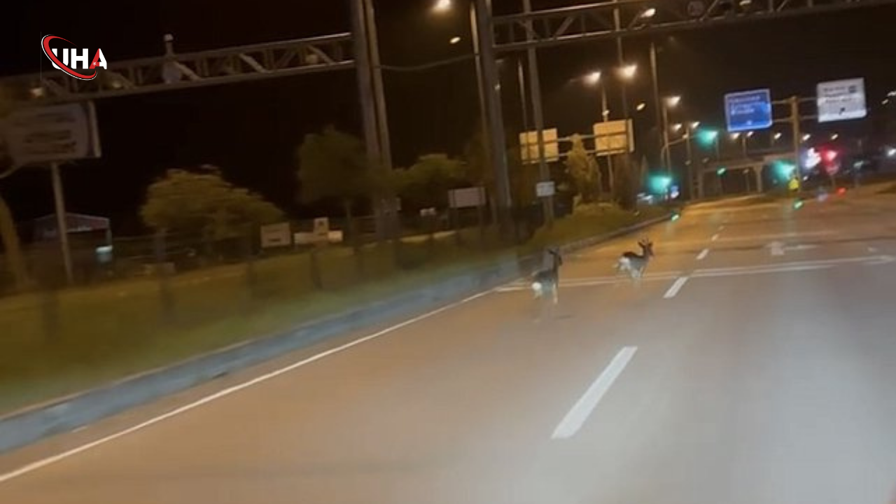 Bartın’da yiyecek arayışıyla ormanlık alandan şehir merkezine kadar indiği değerlendirilen iki karaca, hastane kavşağında görüntülendi. Kara yoluna çıkan karacaların şaşkınlık yaratan o anları, bir vatandaşın cep telefonu kamerasına anbean yansıdı.