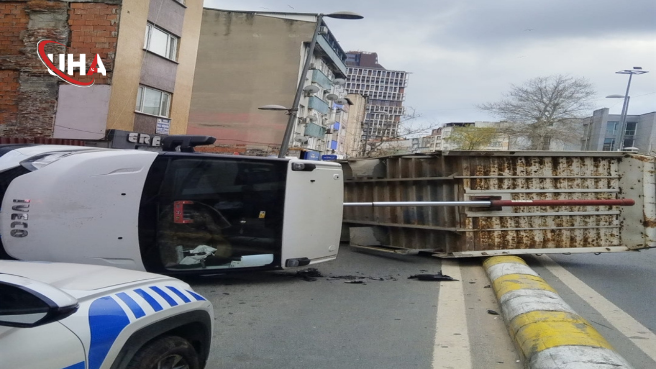 İstanbul Kağıthane’de inşaat demiri boşaltmak için damperi kaldırılan kamyonun yan yatması sonucu maddi hasar meydana geldi.