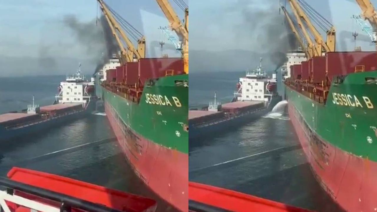 Bursa'nın Gemlik ilçesinde limandan hareket eden bir gemi, başka bir gemiye çarptı.