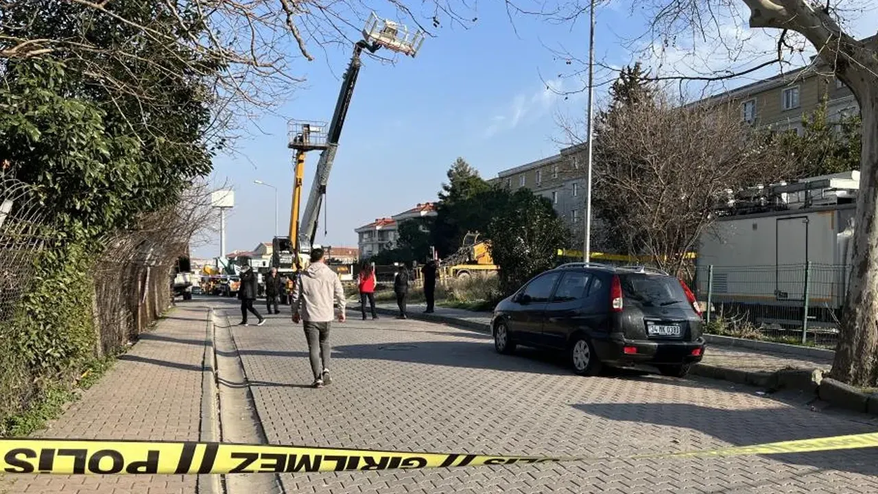İstanbul Bahçelievler'de boş arsada bulunan bir vincin sepeti, işçilerin bakım çalışması yaptığı sırada henüz belirlenemeyen nedenle yamuldu.