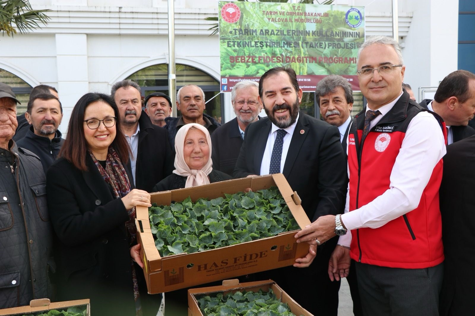Tarım Arazilerinin Kullanımının Etkinleştirilmesi (TAKE) Projesi çerçevesinde 240 çiftçiye sebze fidesi dağıtımı için Yalova İl Tarım ve Orman Müdürlüğü bahçesinde tören yapıldı. Fide dağıtım törenine Yalova Valisi Dr. Hülya Kaya, Yalova Tarım ve Orman Müdür Yardımcısı İrfan Sakinci, Çiftlikköy Belediye Başkanı Adil Yele, Yalova Belediye Başkan Yardımcısı Hatice Öncü Yürekkorkutan, sivil toplum kuruluşlarının ve siyasi partilerin temsilcileri ile çiftçiler katıldı. Törende konuşan Yalova Valisi Dr. Hülya Kaya, devletin, üretmek isteyen çiftçilerin yanında olduğunu belirterek, "Yalova’mızın verimli topraklarının boş kalmaması, üretilmesi, üretilen ürünlerin pazarlanması bizim için çok önem arz ediyor. Tarım ve Orman Bakanlığımızın desteklemesiyle birlikte çiftçimizin eline yerli ve milli fide ulaşıyor. Devletimiz üretmek isteyen çiftçimizin yanında olduğunu hissettiriyor. Çiftçilerimizin de çok ciddi bir emek sarf ettiğinin farkındayım” dedi.