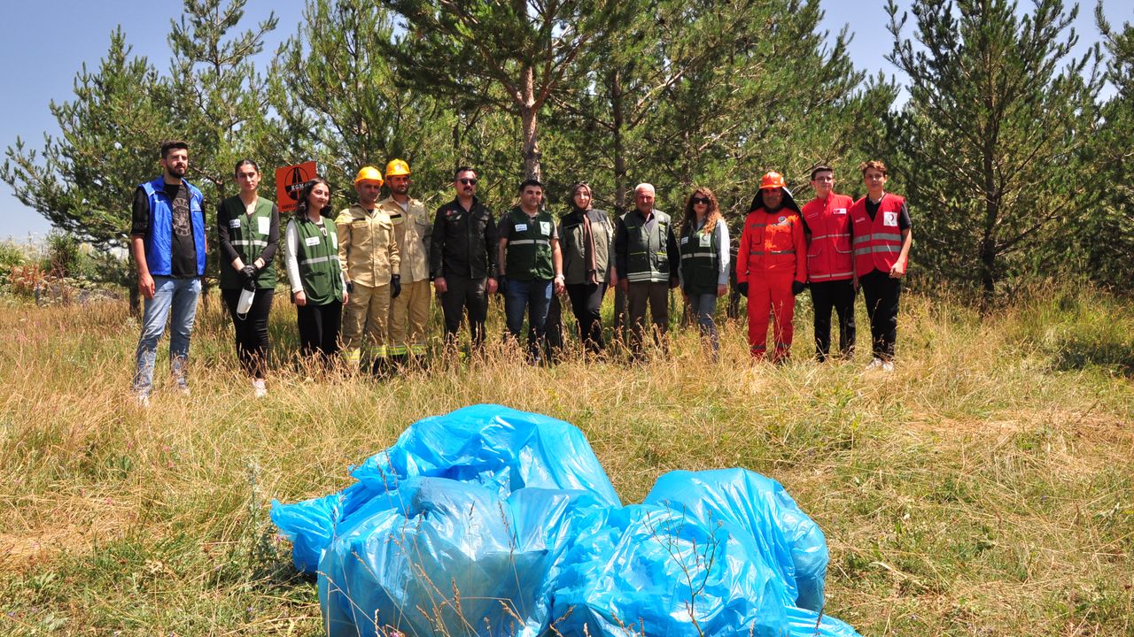 Volkan KARABAĞ/KARS, (DHA)- KARS’ta gönüllüler, orman yangınlarına karşı farkındalık oluşturmak amacıyla ormanda çöp topladı.