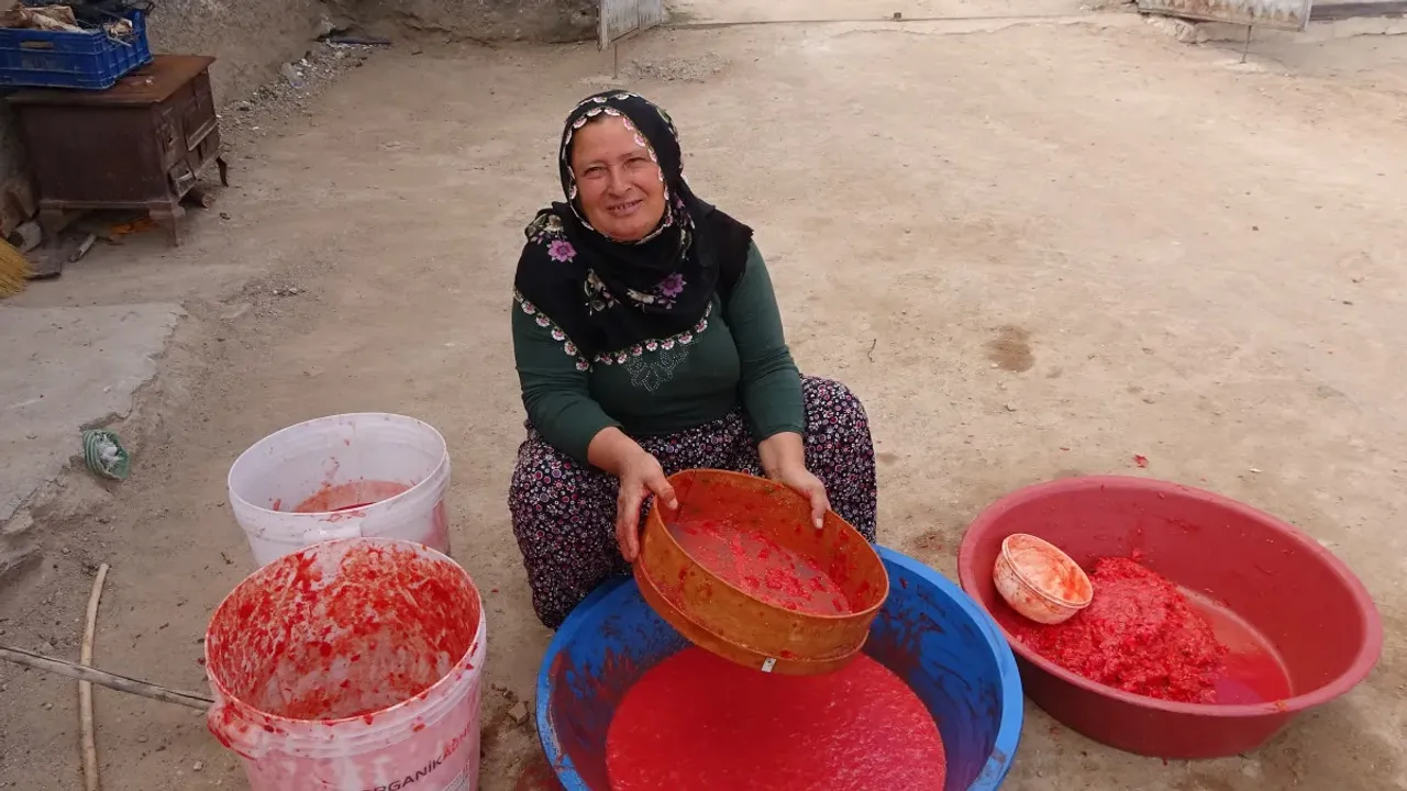 Yozgat’ın Sorgun ilçesine bağlı Alcı köyünde kadınlar, annelerinden öğrendikleri şekilde kışlık salça üretimi yapıyor.